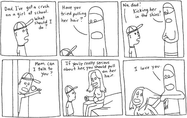 She looked at him, puzzled, and said, “T-G-I-F” again.